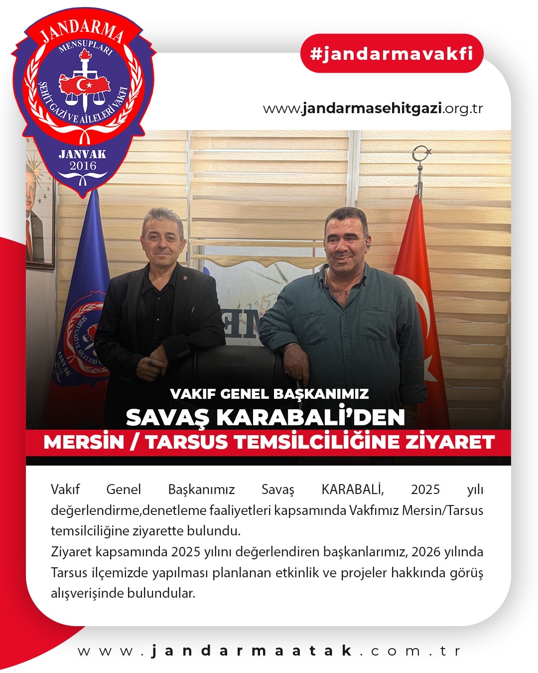 Vakıf Genel Başkanımız Savaş KARABALİ, 2025 yılı değerlendirme,denetleme faaliyetleri kapsamında Vakfımız Mersin/Tarsus temsilciliğine ziyarette bulundu.