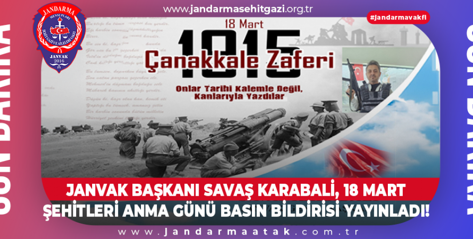 JANVAK Başkanı Savaş KARABALİ, 18 Mart Çanakkale Zaferi ve Şehitleri anma günü ile ilgili Basın bildirisi yayınladı.